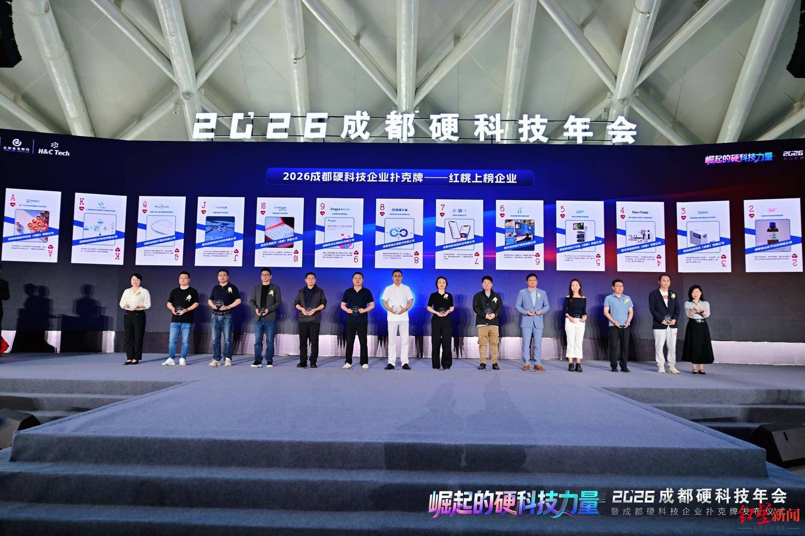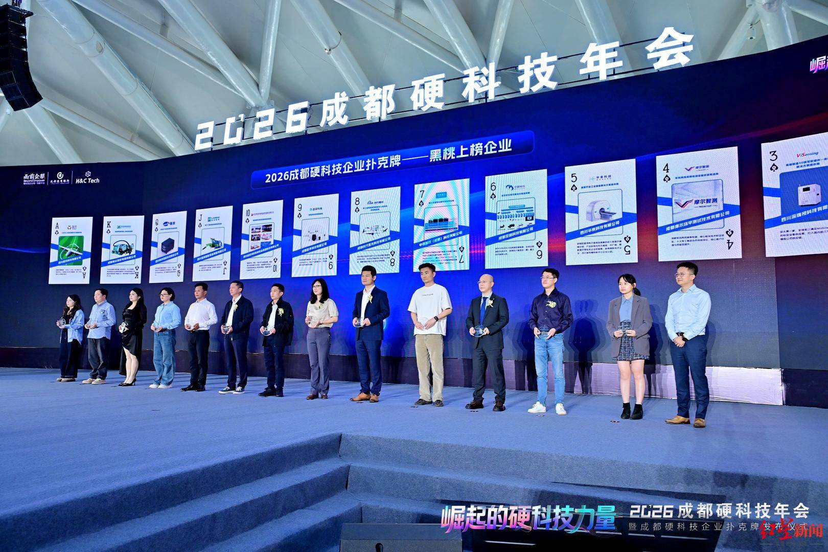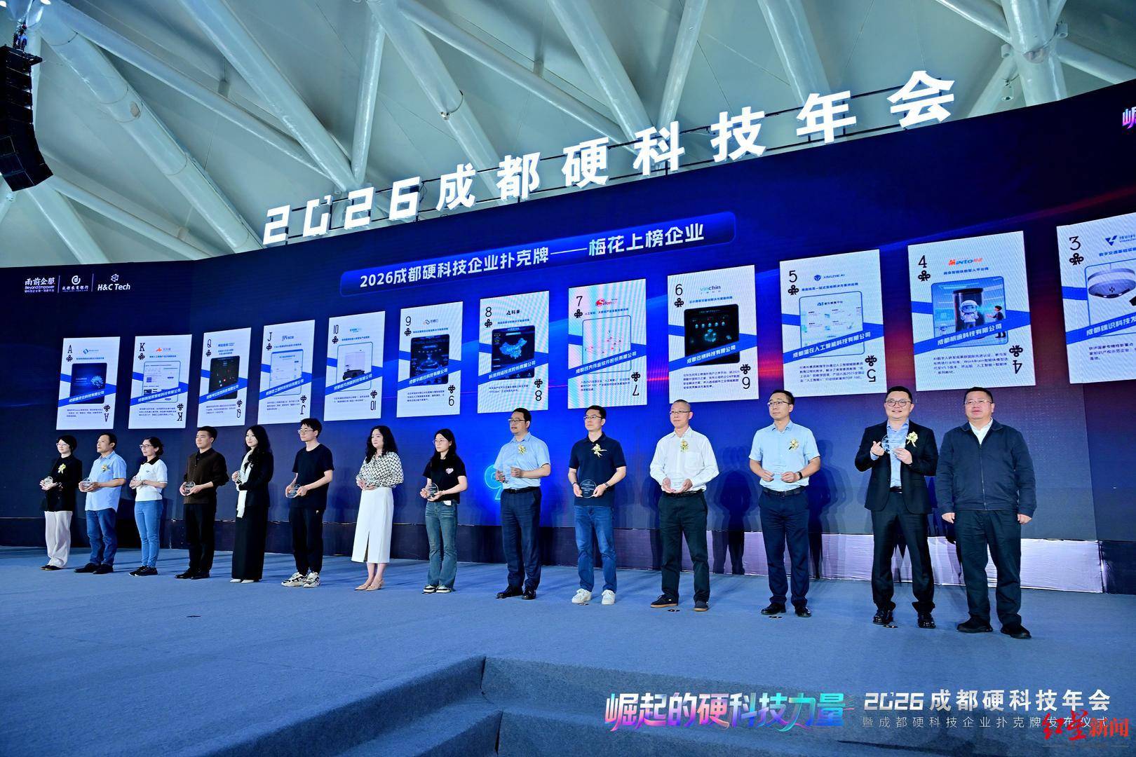 年会上,“2026成都硬科技企业扑克牌”榜单正式揭晓。榜单评选综合了指标模型、专家评审和公众投票。记者了解到,作为连续七年评选的榜单,54家上榜企业覆盖先进能源、生物医药、人工智能、集成电路、低空经济等硬核赛道,既有连续多年上榜的“熟面孔”,也有首次入选的新晋企业,呈现了成都硬科技企业的技术实力与产业布局,为政府、资本和园区的产业决策提供了参考。