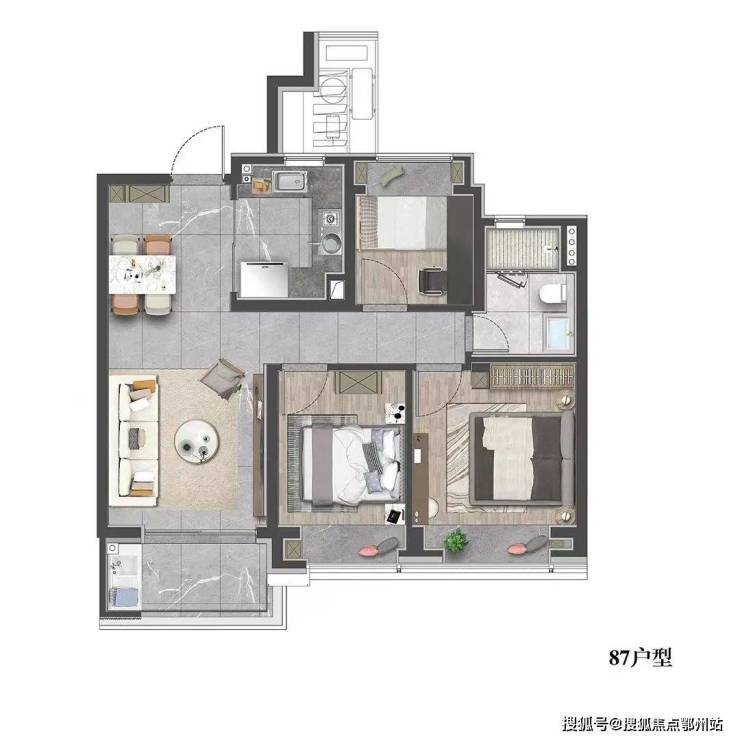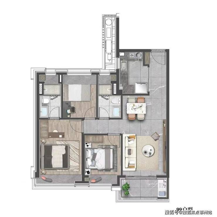 建面约99㎡的三房设计,在空间上使用功能更加多样化,一站式解决了家庭生活的所有功能,优化居家动线,大大提升空间的居住体验.