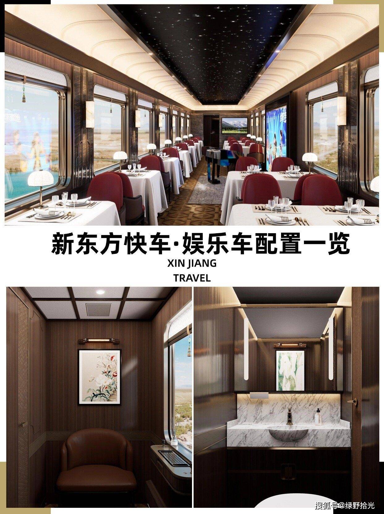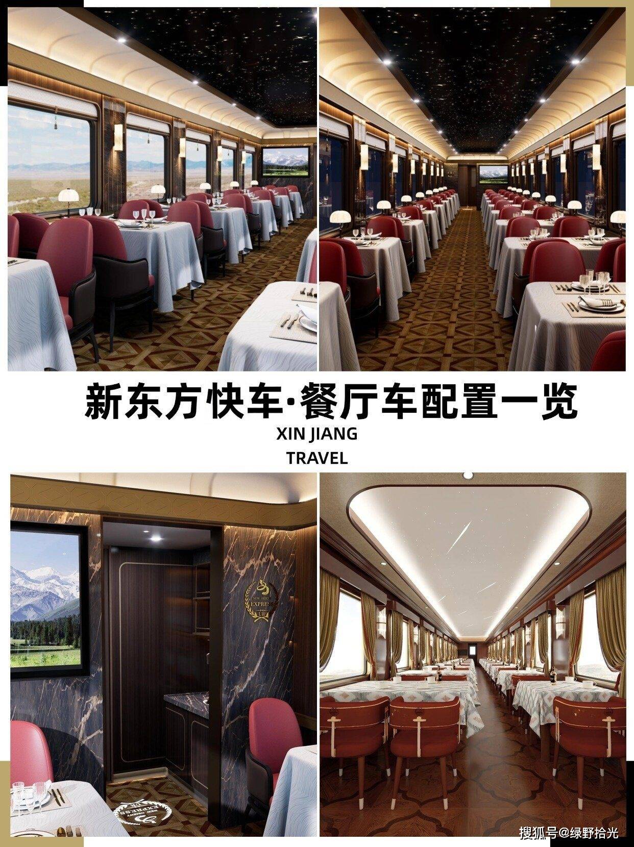 餐车:全新打造的餐车车厢,在原有4人桌基础上,新增了2人桌,以满足各种贵宾需求。可容纳60人同时就餐。由专业厨师团队掌勺,融合新疆特色美食与各地风味佳肴,特别提供少油少盐的适老化、儿童友好菜品,打造舌尖上的美食盛宴;
