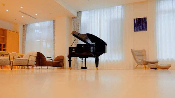 公寓设施以适老化与人文关怀为核心,深度融合瑞典 Group Home 理念与日本先进介护设计精髓,采用单元式介护布局,打造少人数、家庭化的居住环境,让长者在熟悉的氛围中生活,缓解认知障碍带来的陌生感与焦虑感。内装材料均从日本进口,选用天然清洁型实木地板,触感柔软舒适且散发原木芳香,通过天然材质与柔和色彩刺激长者五感,挖掘残存生活感知能力。房间配备三段式介护床、日本原装 Aiphone NBM-HP 无线紧急呼叫系统,实现床头对讲、离床报警、一键呼叫多重功能联动,全方位保障安全;公共空间占比充足,一楼设有员工与长者共同经营的咖啡厅和酒吧,面向社会开放,内庭院与毗邻的希尔顿酒店共用,让长者自然融入社会,维系与外界的情感联结。