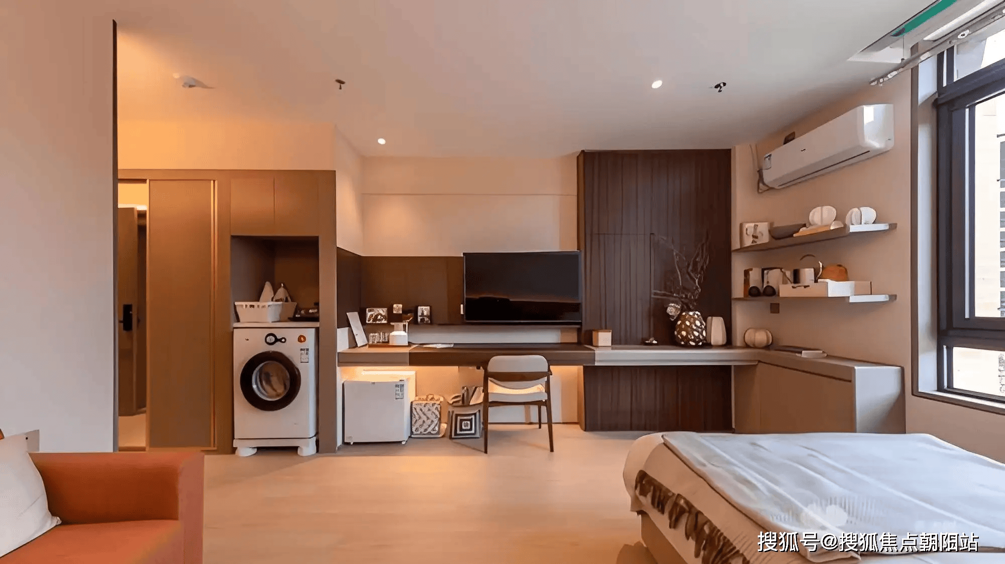 房间内的适老细节做得十分到位,全屋地面做了防滑处理,床头、墙面、卫浴等关键位置都安装了扶手,方便长辈起身、扶靠;家具选用圆润无棱角的款式,床具高度贴合老年人的起身习惯,床垫软硬适中,既能保证舒适,又能提供足够的支撑;每间房间都配备独立卫浴,干湿分离设计,避免洗澡时滑倒,卫浴内设有防滑垫、扶手,洗漱台高度适中,方便长辈使用。