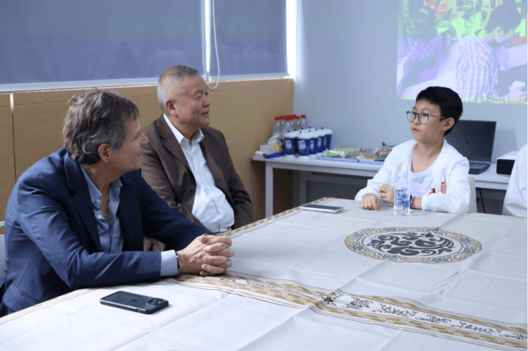 赛场之外,更温暖的交流正在上演。里姆席与夫人主动走到小牌手中间,和孩子们围坐成圈,开启了一场零距离的对话。他们耐心倾听孩子们学习桥牌的趣事与感悟,细致询问大家在桥牌学习中的收获与困惑;同时也分享了自己对桥牌运动的理解——“桥牌不仅是技巧的比拼,更是思维的修炼与信任的传递”。孩子们纯真又深刻的回答,不时引得主席夫妇开怀大笑,这一刻,语言的隔阂消散,唯有对桥牌的热爱在空气鸣。