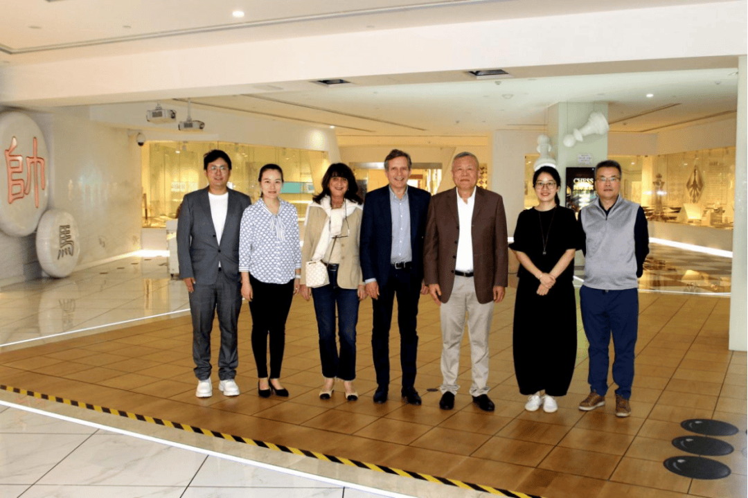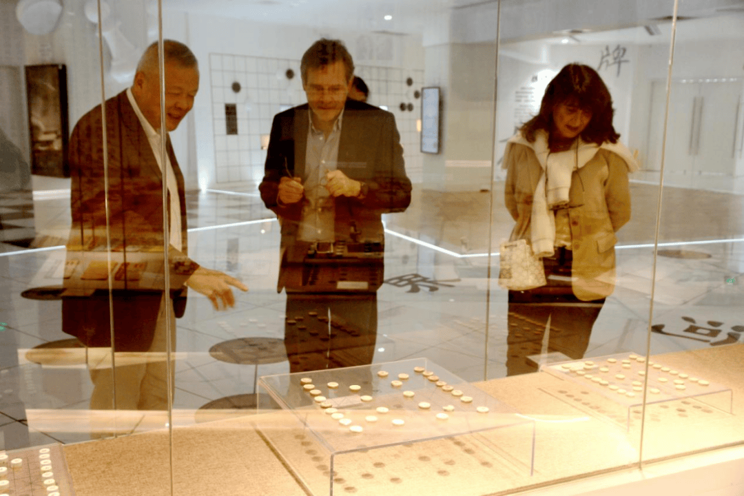 俱乐部的交流意犹未尽,里姆主席一行随即前往上海棋牌博物馆,在戴柳会长的陪同下开启新的文化探索。馆内,承载着岁月印记的棋牌文物、清晰展现上海棋牌运动演进的图文展区,都让里姆主席驻足良久。他仔细端详每一件展品,对上海沉淀百年的棋牌文化底蕴发出连连赞叹。