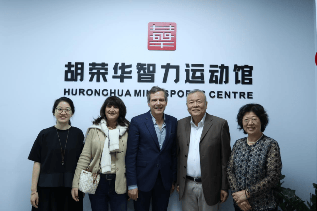里姆主席一行首先走进俱乐部的荣誉墙和文化长廊。从俱乐部的创办缘起,到品牌赛事的成长轨迹,再到“一代棋圣”胡荣华先生深耕智力运动、推广桥牌文化的初心故事。墙上定格的珍贵影像、展柜中闪耀的荣誉奖杯,不仅记录着俱乐部在桥牌人才培养、文化传播上的坚实步履,更让里姆主席频频驻足点头。他对俱乐部多年来的卓越成就给予高度认可,尤其称赞其深耕青少年桥牌培训的长远眼光——这份“从娃娃抓起”的坚持,正是桥牌运动生生不息的关键。